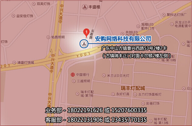 公司地址:廣東省中山市古鎮(zhèn)鎮(zhèn)曹興西路53號2樓A1(古鎮(zhèn)瑞豐燈配正門對面卡爾頓2樓)