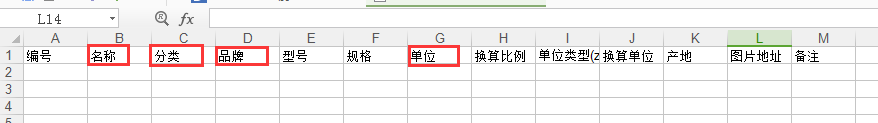1、表格里的名稱、分類、品牌、單位的內(nèi)容為必填項,如果不按此格式填寫將無法導入;