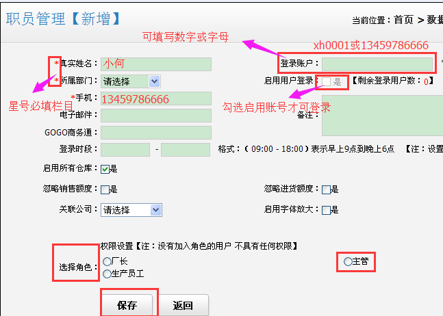 職員登錄權限以及賬號的建立:如圖下