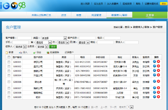 〖菜單位置〗:數(shù)據(jù)錄入/查詢 → 客戶管理