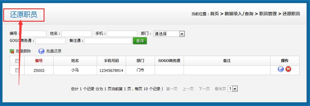 但是在某種原因下,直接刪除了該職員信息,沒有取消“啟用用戶登錄”,則被刪除的職員就會落在【還原職員】列表中,那么這個用戶登錄數(shù)就被占用了。